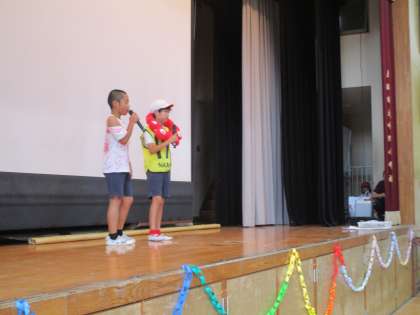 楽しかったなかのまつりも終わりに近づき、閉会式では、感想を伝えあいました。どのお店も楽しかったです。当日も当日までもみんなで協力することが子どもたちの達成感・成就感につながります。うまくいかなかったところやよかったところをふりかえり次に生かしていきます。それが、特別活動のめざす子どもたちにつけたい力です。これからも自ら考え、行動し社会参画ができる子どもたちを本校では育てていきたいと思っています。今日は、お忙しい中たくさんの方に来校いただきありがとうございました。今日は、子どもたちのがんばりをほめてやってください。