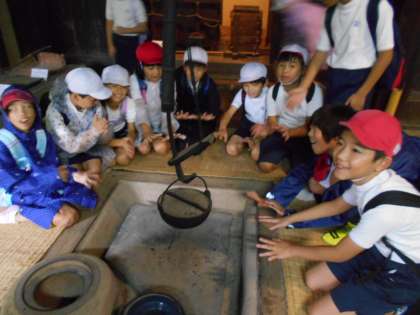 日本全国の土地の特徴に合わせた昔の民家を見たり、中に入って昔の民家の造りや昔の道具を見たりしました。