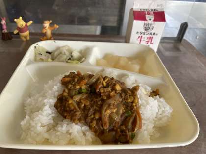 今日の給食(10月9日) 公開日 2025/10/09 更新日 2025/10/09 給食 今日の給食は、大豆入りキーマカレーライス、キャベツのひじきドレッシング、和なし(カット缶)です。 いいね(0)