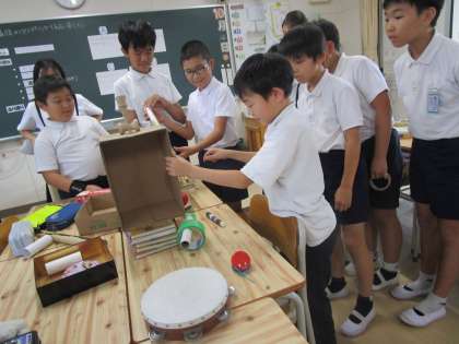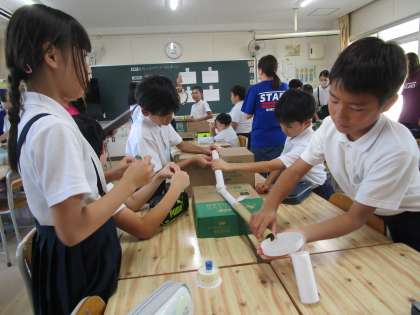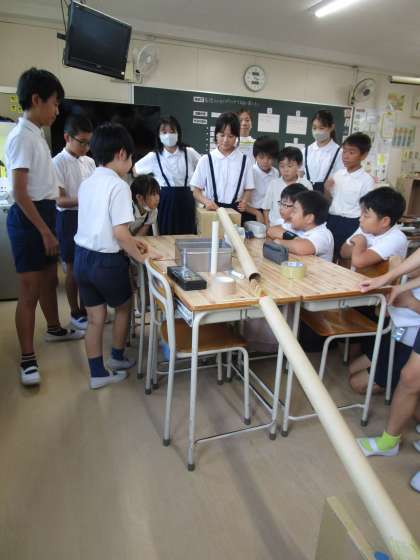 14日のクラブ活動では、前時で各班が工夫した仕掛けを生かしてピタゴラスイッチを作りました。試行錯誤する中で4・5・6年生が意見を出し合っていました。ビー玉の発射装置を作ったり、スタートに磁石が反発しあう力を使ったり、最後のフィナーレを音が出るようにしたりと工夫しました。発表の時は、うまく成功できなかったところもあったけど、どの班も楽しそうでした。