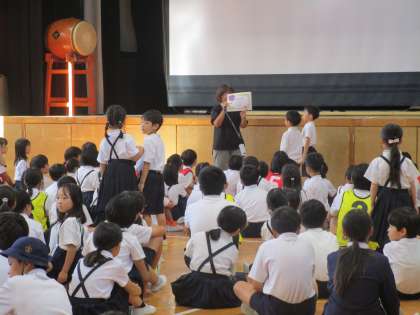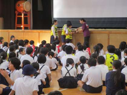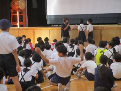 10月2日のなかのまつりの表彰がありました。すべての店を回れたチームにコンプリート賞を準備していましたが、残念ながらすべての店を回れた班はありませんでした。一つだけ回れなかったチームが3チームあったので、表彰されました。わたしからは、万博を取り入れたクラスに「万博だったで賞」を渡しました。どのクラスも工夫されていて協力してがんばっていたことも褒めました。来年も楽しいなかのまつりをみんなでつくりあげましょう!