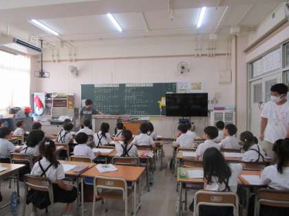 今日は、長さについて学習しました。指を使って机の縦や横を測りました。ちょうどにならないところもありましたが指何個分で長さを表すことができることが分かりました。