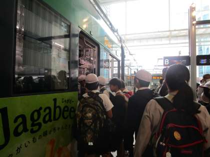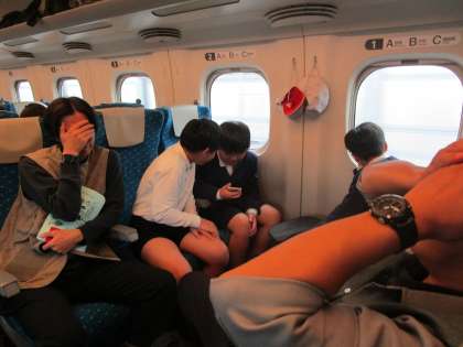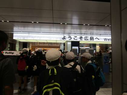 新幹線の中です。人狼ゲームをしているところです。広島駅について広電に乗りました。