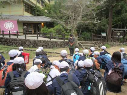 閉舎式の様子です。1泊お世話になった宿の方に感謝の気持ちを代表が述べました。宿の方から「楽しんでください」「また、大人になってぜひ、来てください」と話していただきました。ありがとうございました。
