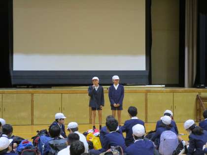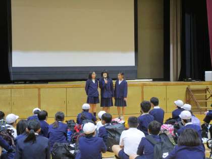 帰校式の様子です。私からは本川小学校での交流について振り返り保護者の方に伝えました。2日間での子どもたちの頑張り、なかのまつりで深まった仲が修学旅行でより深まったと思います。帰りの新幹線でも寝る人がほとんどいず、みんなで楽しくカードゲームをしている姿を見てうれしくなりました。昨日は、どんな思い出話を子どもたちから聞かれたでしょうか?学んできたことを伝えるために平和学習のまとめをしていきます。