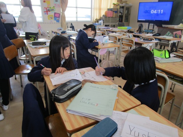 好きなものを尋ねる英語を学習しました。好きなものを友だちに聞いて交流しました。