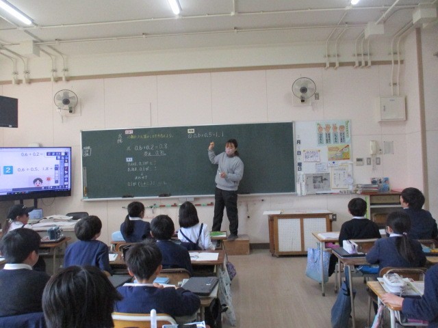 今日の算数は、小数のたし算でした。整数と同じように計算して0.1が何個分と考えればよいことがわかりました。