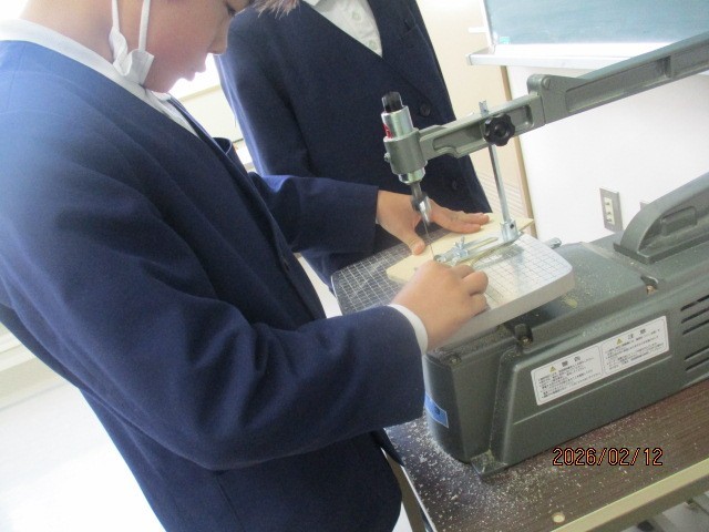 5年生は、電動のこぎりでパズルを作っています。自分の考えた形に切れたら、色を付けています。