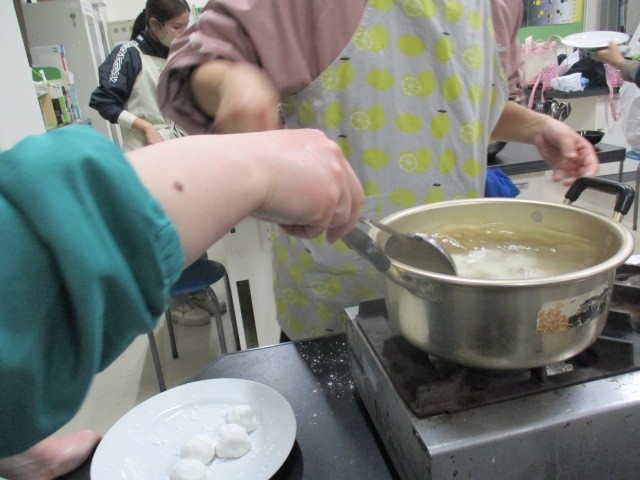 今日は、春節にちなんで元宵というお餅を作って食べました。もち粉の生地にチョコレートを包んでチョコレート団子を作りました。チョコレートが出てこないように丸めて鍋で湯がきました。優しくお玉で混ぜて浮いてきたら出来上がりです。みんなでおいしく食べることができました。来月の4日は、スエンウコンの会の修了式です。6年生のおうちの方もぜひご参加ください。