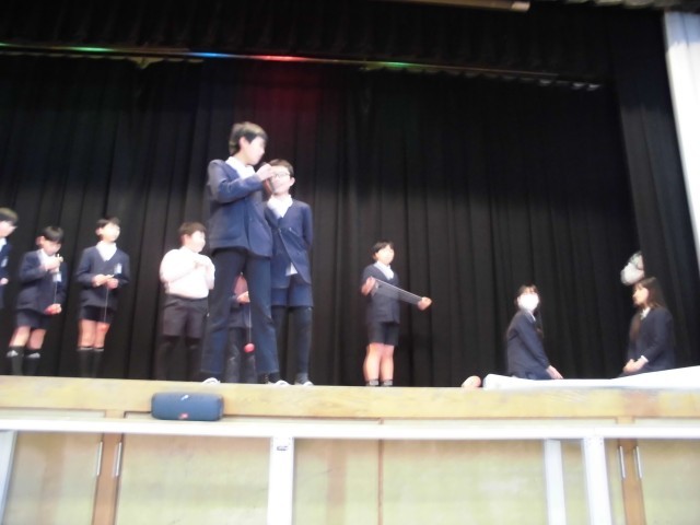 昨19日(木)朝の集会の時間にクラブからの発表の様子です。