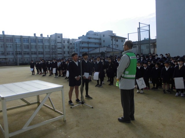 今日の児童朝会では、いつも登校時の安全を見守ってくださっている「見守り隊」の方へ感謝の気持ちを伝えました。