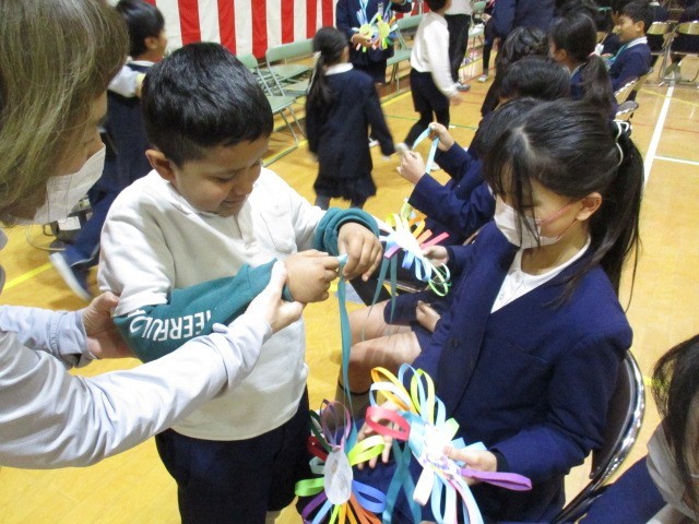 昨日の20分休みに1年生は6年生にありがとうの気持ちを伝える会をしました。