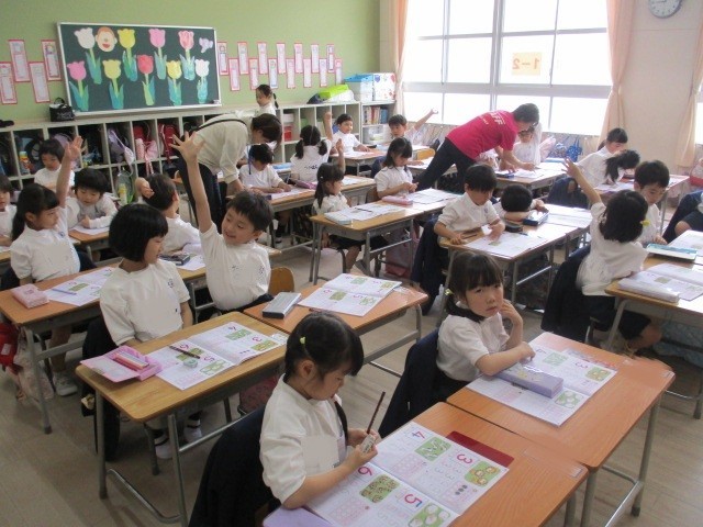 1年生は算数の時間に「すうじ」をかく練習が始まりました。