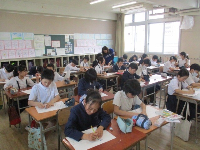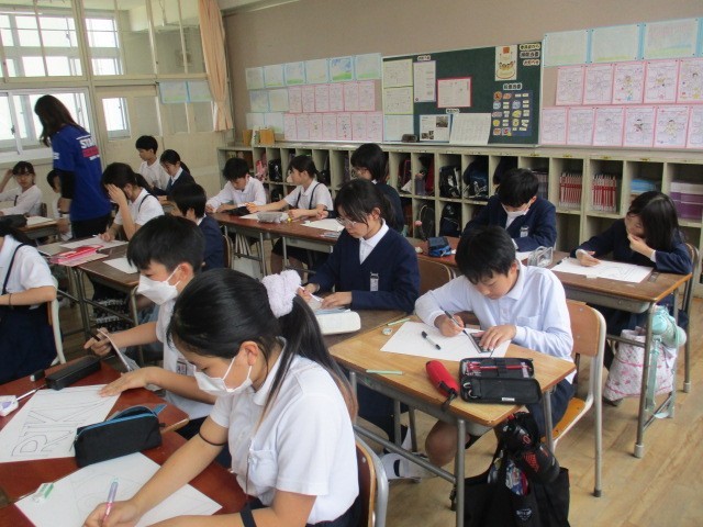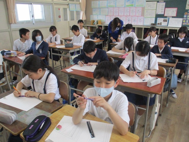 6年生は図画工作の時間に「名前アート」の制作が始まりました。