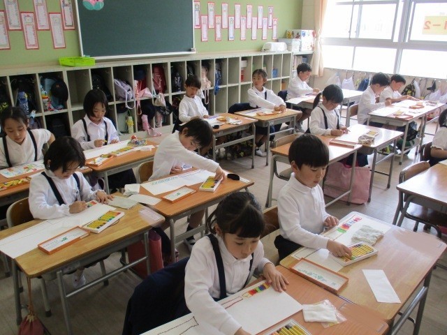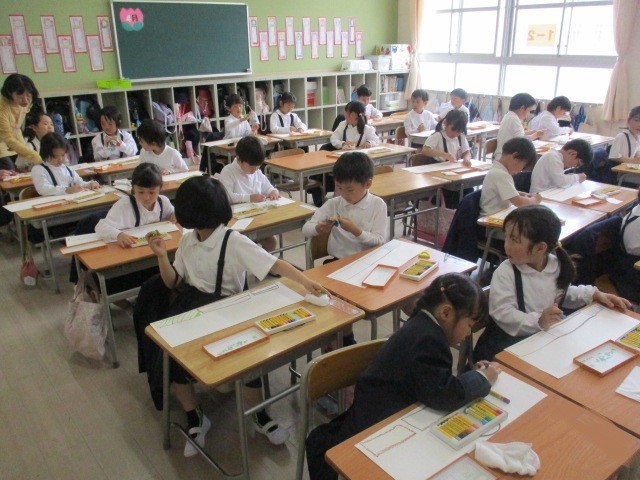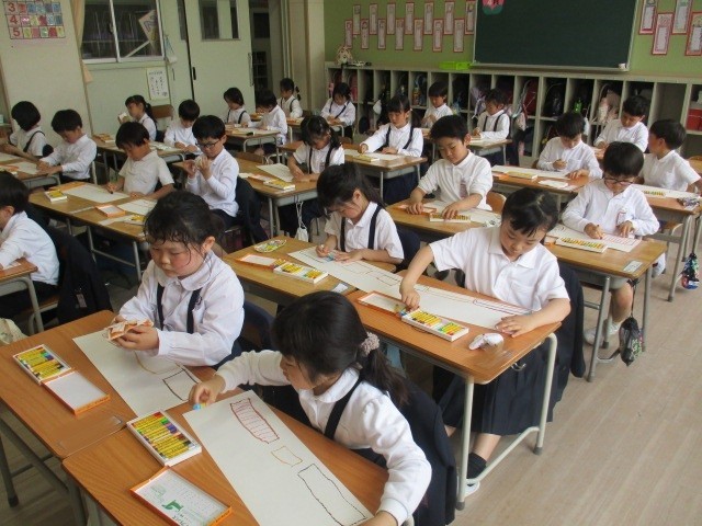 1年生は図画工作の時間に「パス」の基本的な使い方について学習しました。