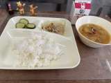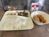 今日の給食は、鶏肉の塩こうじ焼き、さつまいものみそ汁、きゅうりの甘酢あえです。