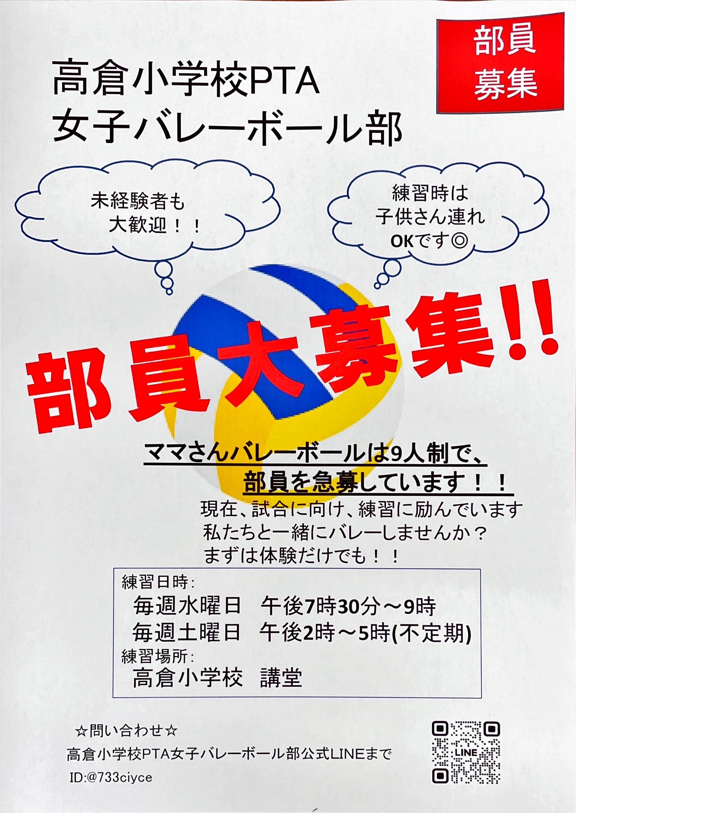 高倉小学校PTA 女子バレーボール部の部員募集のチラシ