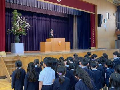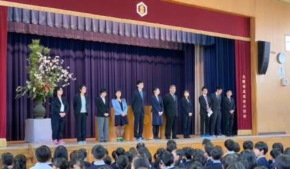 最初に転入してきた子どもたちの紹介があり、続いて学校長から転出した教職員のおしらせと、転入してきた教職員の紹介がありました。