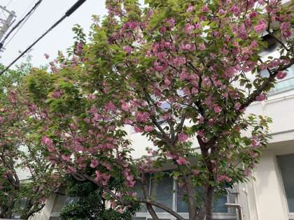 今年の桜は、最初に咲いた染井吉野が昨年よりも長く咲きました。そして現在は八重桜が美しく咲き誇っています。