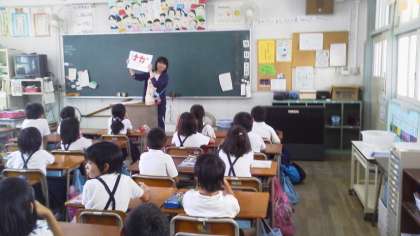 漢字を学習している1年生。保健指導でけがの手当てを学んでいる2年生。算数の学習をしている4年生の様子です。涼しさが伝わってきませんか?この学習環境の改善を日々の学習の一層の充実につなげていきたいと願っています。