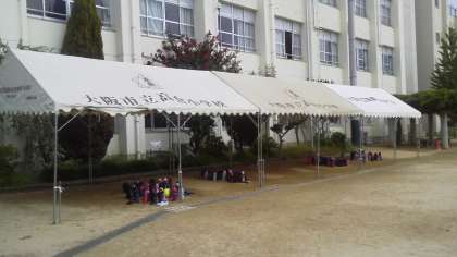 学校としても、練習中の熱中症予防対策としてテントを運動場わきに設置し、水分補給や休憩時に活用できるようにしました。また、体育館に蚊が入ってくるようなので、蚊取り線香を設置し防ぐようにしています。