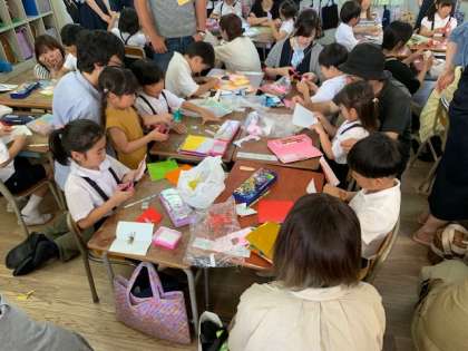 写真は上から、1年図画工作「チョキチョキかざり」、4年図画工作「線描」、5年家庭科「ソーイング」の学習の様子です。