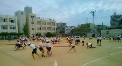 4年団体競技は棒引きです。練習も真剣そのもの! 赤がんばれ!白がんばれ!!