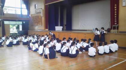 18日の昼休み、講堂で応援方法について話し合い、練習をしていました。6年生の団長が中心になって自分たちで振付のプランを考え取組を進めているそうです。どんな応援団の演技になるか今から楽しみです!