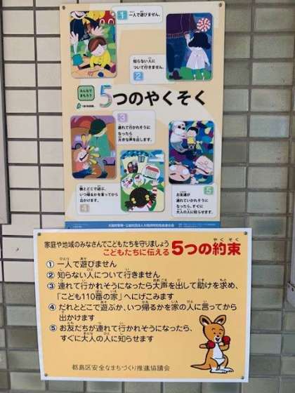 ご家庭におかれましても、お子様といっしょに「5つのやくそく」についてお話ししていただけたらと思います。