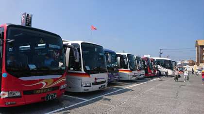 たくさんのバスが次々にやってきて賑やかです。