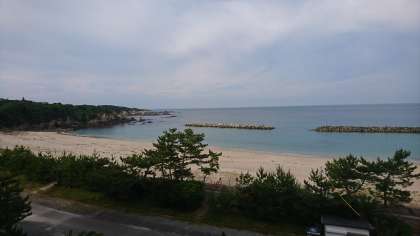 宿舎の窓から見える景色です。ここで地引き網体験をします。