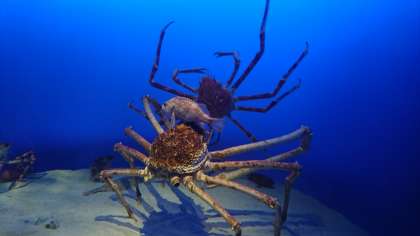 タカアシガニです。なぜか魚を頭に乗っけています。