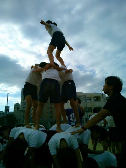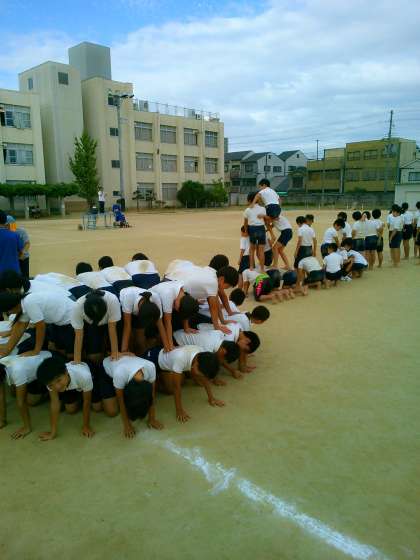 6年生の組体操の練習も、いよいよ最終段階になりました。「one for all」をめざし、心と体を鍛えています。互いに友を信じ、支え合いながら、挑戦を続けています。運動会当日を楽しみにしていてください!