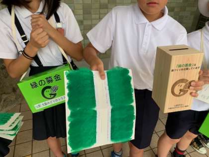 7月1日(月)から「緑の募金」がスタートしました。児童会の子どもたちが玄関で募