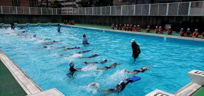 夏休み初日は雨天のため、中止になったプール開放ですが、昨日からは予定通り実施することができました。今日は夏らしい日差しが照りつける中、参加した子どもたちは、少しでも自分の泳力を伸ばそうとがんばっていました。