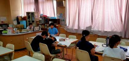 また図書室も開放しています。宿題をしたり、自分の気に入った本を読んだり、思い思いの時間を過ごしていました。