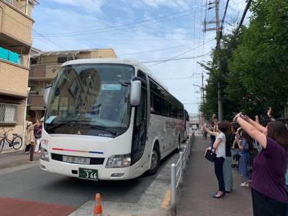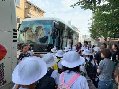 先ほど、5年生の子どもたちが林間学習でハチ高原に向けて出発しました。