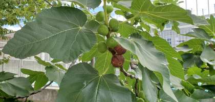 答えは無花果(いちじく)の実です。例年7月の後半から8月いっぱいくらい、ちょうど子どもたちが夏休みに入った頃に実が赤く熟すので、知らない子が多いかしれません。今まで知らなかった人は、ぜひ今度学校に来た時に見つけてほしいと思います。