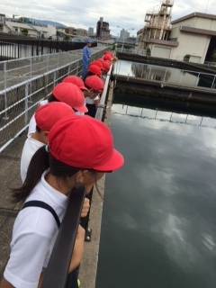 淀川から取り入れられた水は、最初濁っていました。しかし、装置を通る間に順にゴミなどが取り除かれます。
