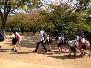 10月10日、今日2年生は大阪城公園に遠足に出かけています。