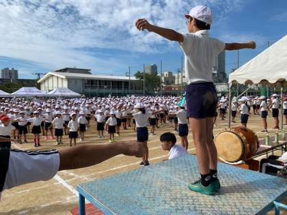 ラジオ体操、走れ輝く4年生、にじいろマスカット(2年)の様子です。