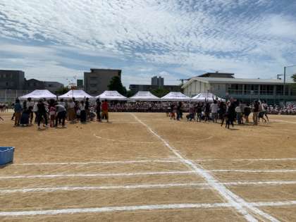 PTA玉入れ、い・だ・て・ん〜バトンをつなげ〜(6年)、大玉運び(全学年)の様子です。