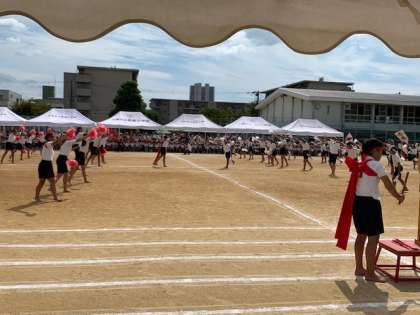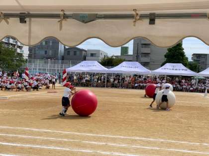 鼓笛隊パレード、応援合戦、大玉ころりん(2年)の様子です。