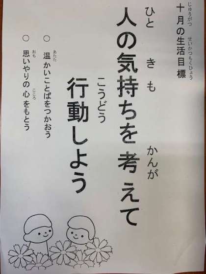 10月15日(火)からは「思いやり週間」がスタートします。相手の気持ちを考えたことば遣いや、相手を思いやる心の醸成に努めていきます。