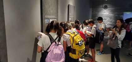 写真は「ピースおおさか」で展示物等を見学している様子です。どのグループもしっかりメモを取りながら見学できていました。