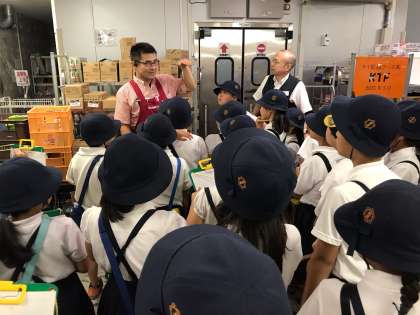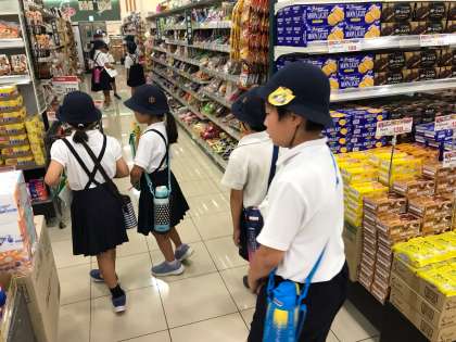子どもたちはスーパーマーケットのひみつを探しに行き、たくさんのひみつを発見しました。また、店長さんたちから商品を販売するためのたくさんの工夫を教えていただきました。普段は何気なく買い物をしている子どもたちは、とっても驚いたり、感心したりしていました。