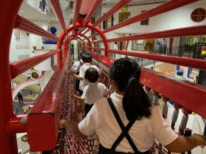 キッズプラザにはたくさんの体験コーナーがあり、子どもたちはグループでさまざまな体験活動をしました。活動中はグループでコーナーをまわり、お互い協力して活動することができました。友だちと協力することの大切さを学ぶことができたようです。