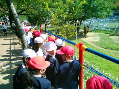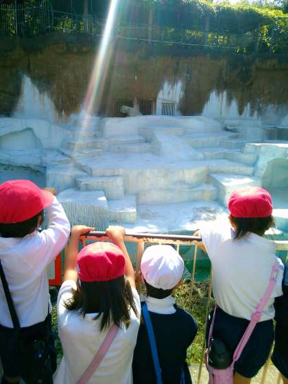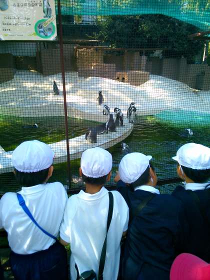 天王寺動物園に長い列をつくって歩きながら、ペンギンやしろくまなど