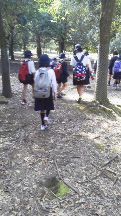 二月堂から飛火野までは班ごとにオリエンテーリングをしました。少し迷った班もありましたが、地図を見て相談しながら無事ゴールしました。