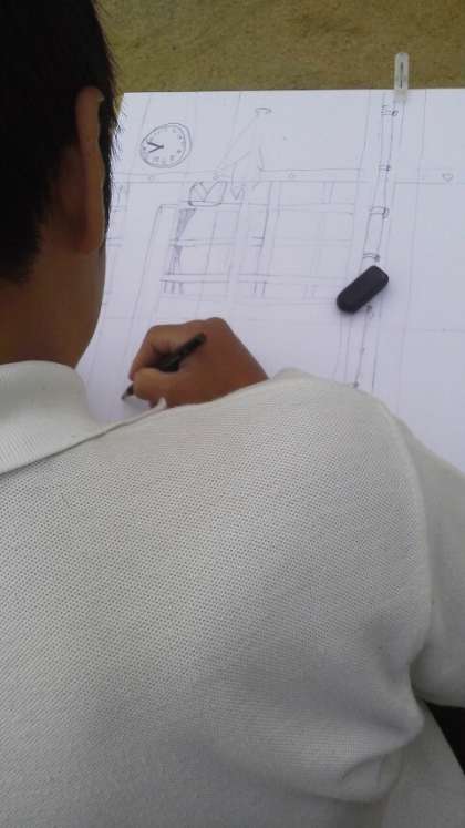 運動場に出てお手製の構図枠を片手にスケッチをしている6年生を見かけました。下絵を完成させ彩色に取り組もうとしている6年生もいます。